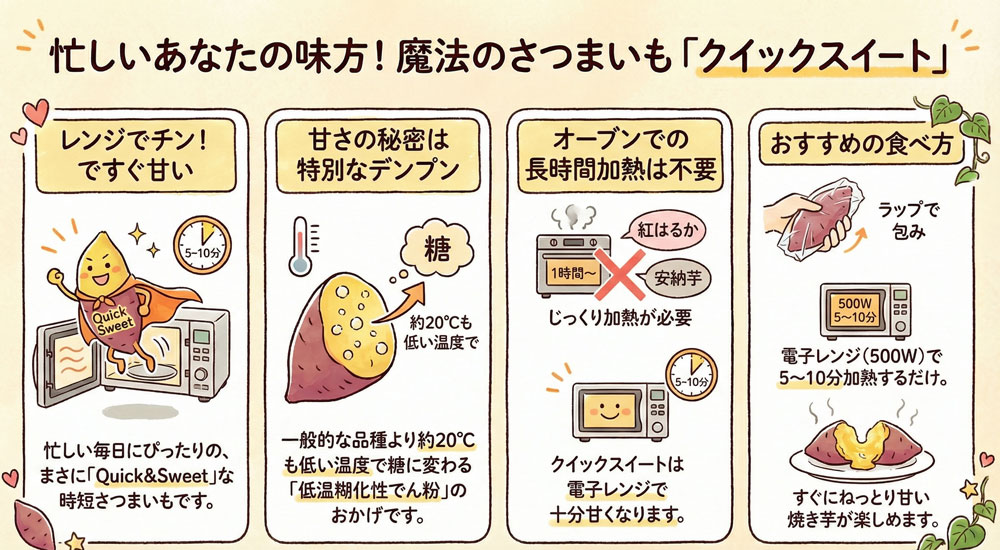 皆さんのサツマイモライフに新たな楽しみをもたらしてくれる存在として、クイックスイートをぜひ覚えておいてください。